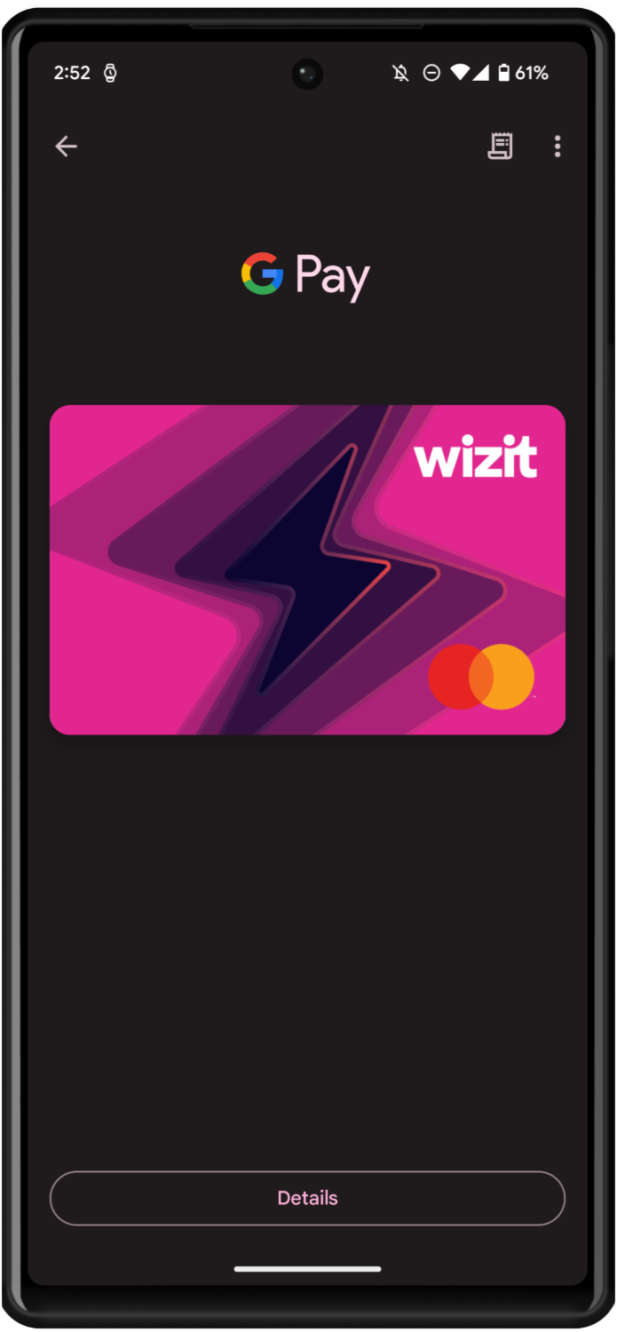 When you use your phone to pay in stores, Google Pay doesn't share your actual Wizitcard number with your payment, so your information stays secure. Plus, you can check out faster and easier with the device that’s already in your hand – no need to pull out your wallet and wait for your chip to be read. Google Pay is a trademark of Google LLC. Here’s the Google Pay Terms and Conditions if you are into fine print.