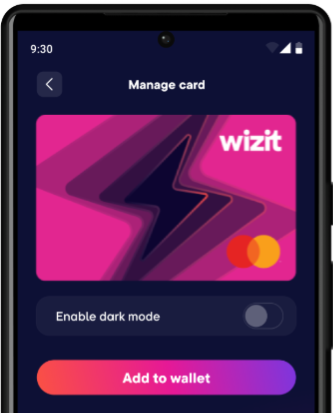 Tap and pay anywhere Google Pay is accepted. Add your Wizitcard to Google Wallet directly from your Wizit app.